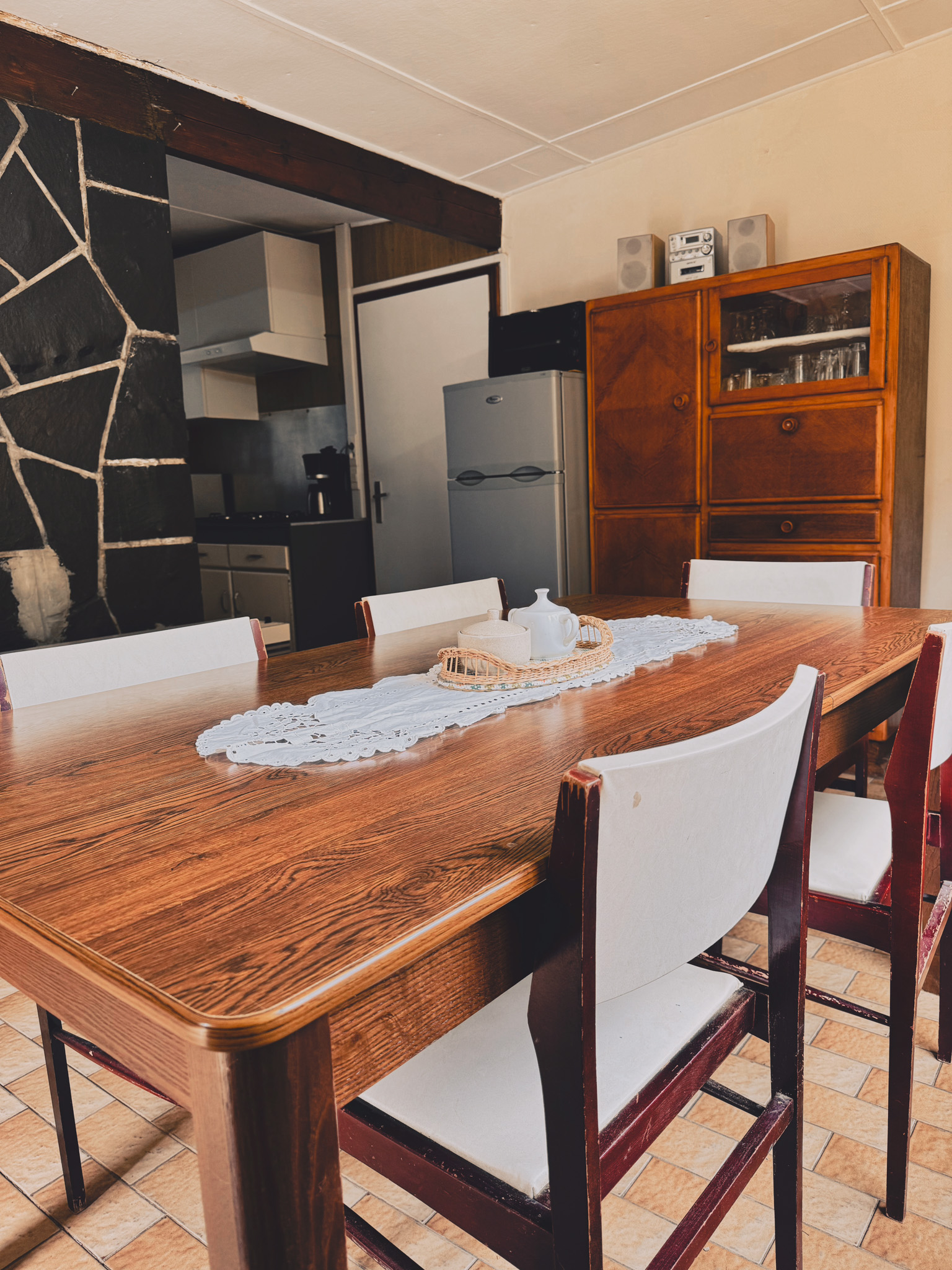 C’est le lieu parfait pour déconnecter doucement , faire une sieste après une balade, ressortir le Scrabble, ou juste écouter le vent dans les arbres. Dedans : deux chambres sans chichis, une salle de douche qui sent la lavande, une kitchenette tout droit sortie de 1974, et un coin salon qui n’attend que ton inspiration.